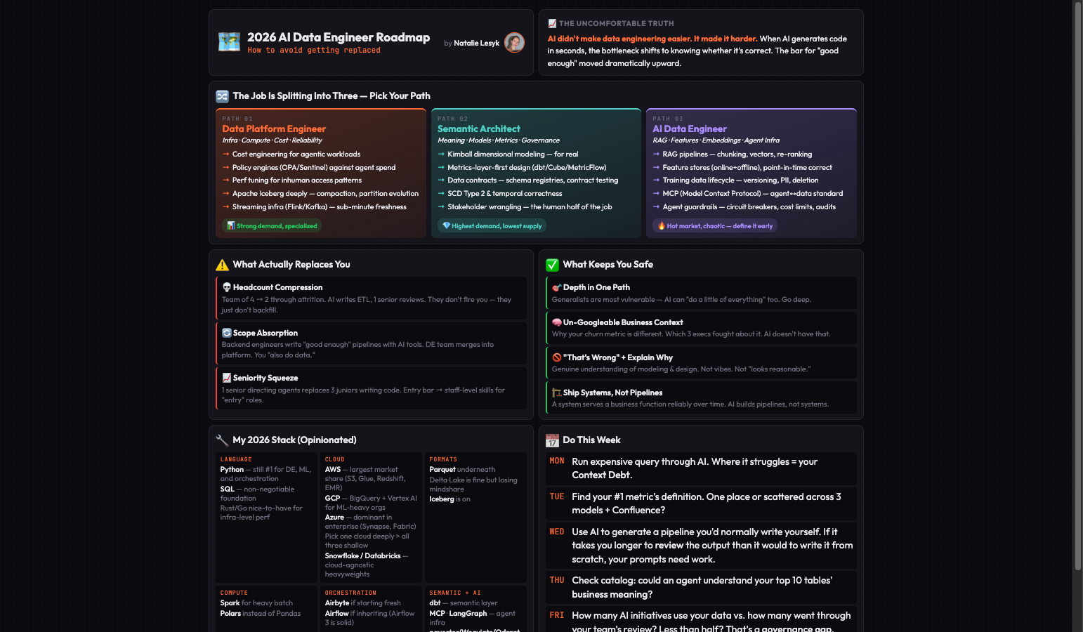In 2024, a mid-level data engineer could coast on knowing Airflow, writing decent SQL, and fixing pipelines when they broke. That was a $140k job.